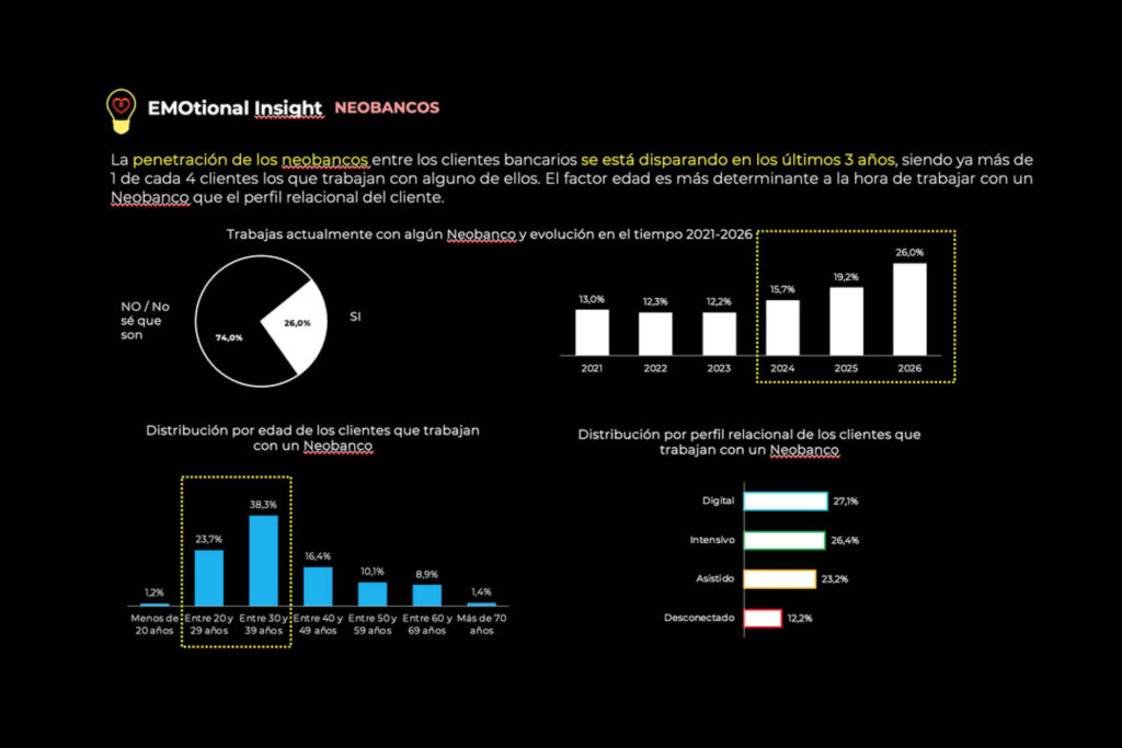 El Estudio General incluye además un zoom específico sobre neobancos y un Informe Emocional de los Seguros Bancarizados, dos ámbitos que están redefiniendo la competitividad del sector.